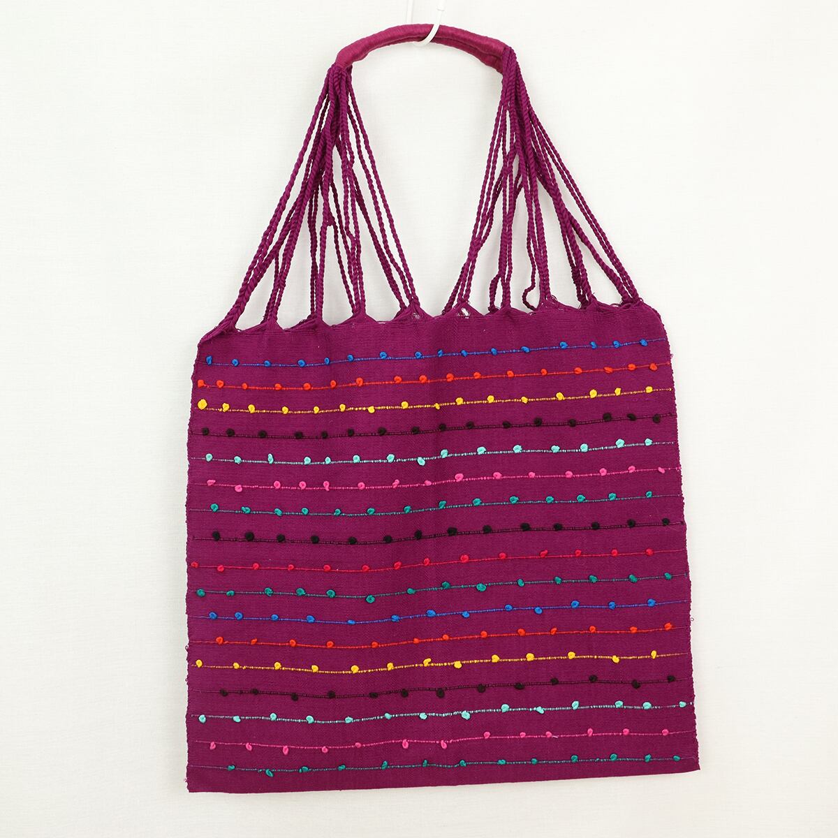 伝統的な織物が盛んなチアパス州でひとつひとつ丁寧に作られた、表情豊かな色合いが素敵なハンモック状のコットントートバッグ。